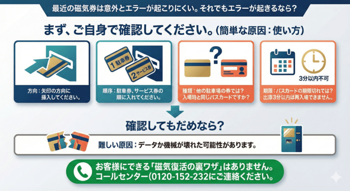 磁気券の一時的エラーと修復不能エラーの対処方法